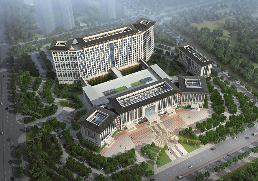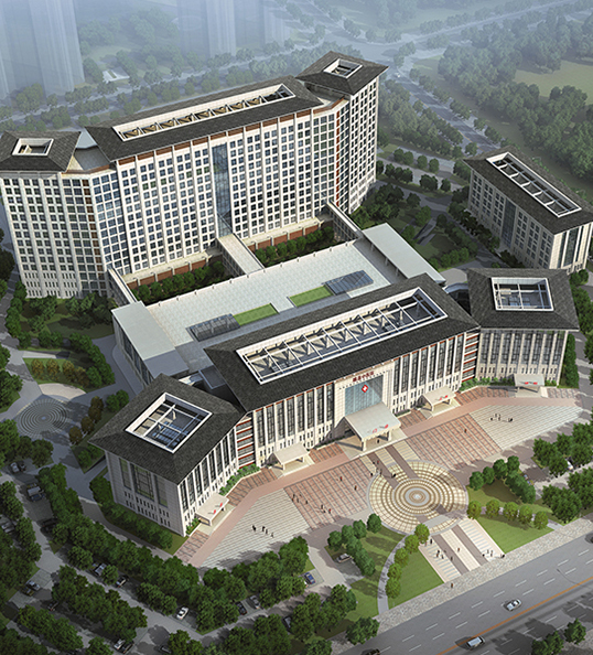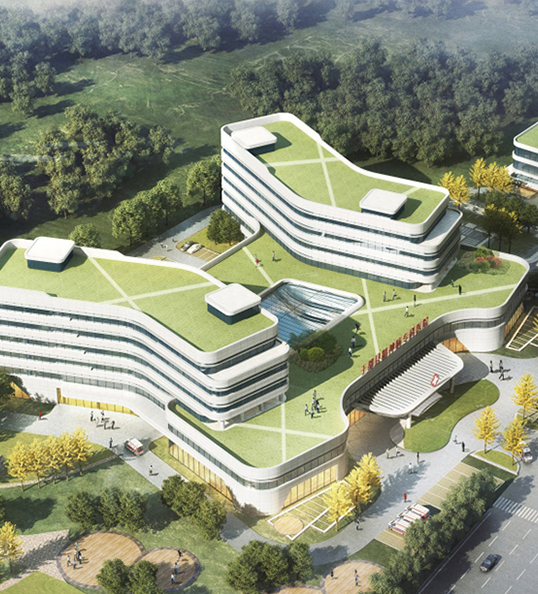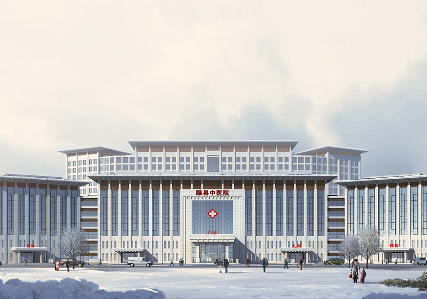 建筑群總體平面形態(tài)呈“鰲”形,形象的說明睢縣中醫(yī)院在當?shù)蒯t(yī)療領域乃至全國中醫(yī)院系統(tǒng)獨占鰲頭,同時也象征來此就醫(yī)的患者能夠健康長壽。